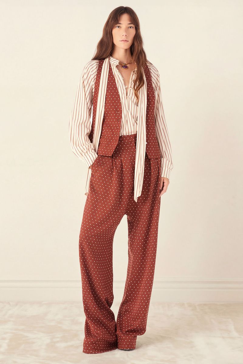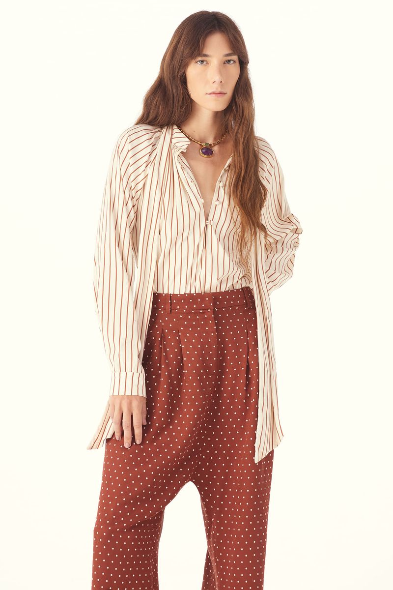 A Calca Salvatore traduz a alfaiataria em leitura contemporânea, onde rigor e movimento caminham lado a lado. Confeccionada em Biarritz, uma reinterpretação da alfaiataria clássica e atemporal italiana. A modelagem longa salto com cintura média posicionada logo abaixo do umbigo ganha caimento levemente saruel e duas pregas frontais, enquanto o cós limpo com fechamento por gancho de alfaiataria e zíper sustenta a construção com precisão, evidenciando a assinatura construtiva CRIS BARROS.