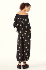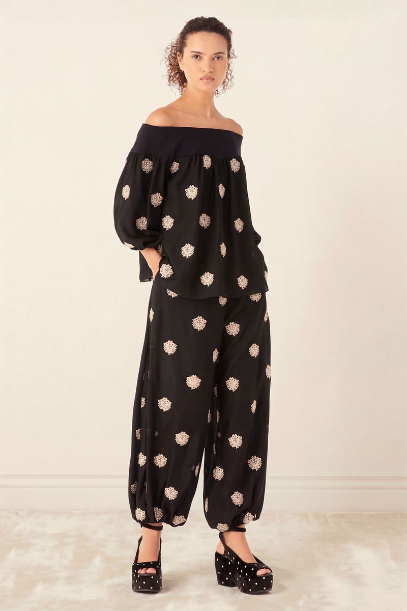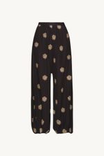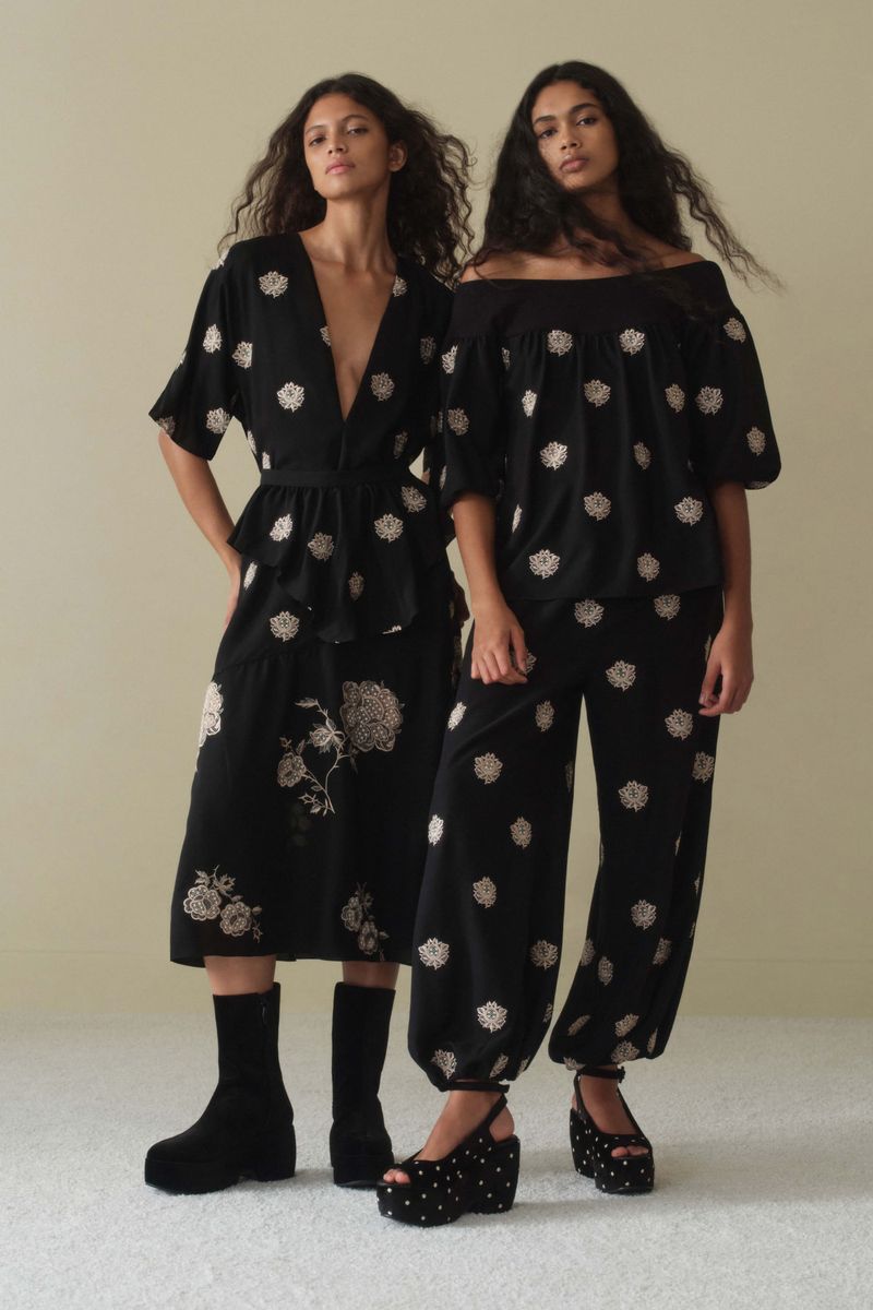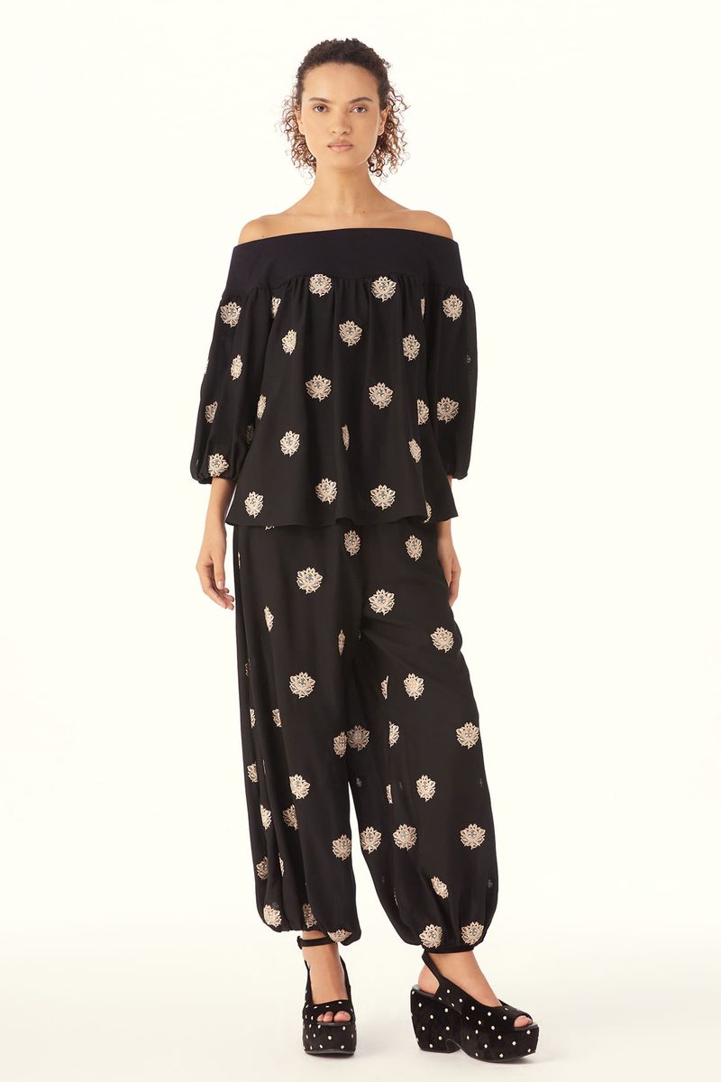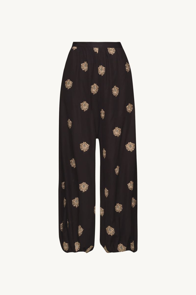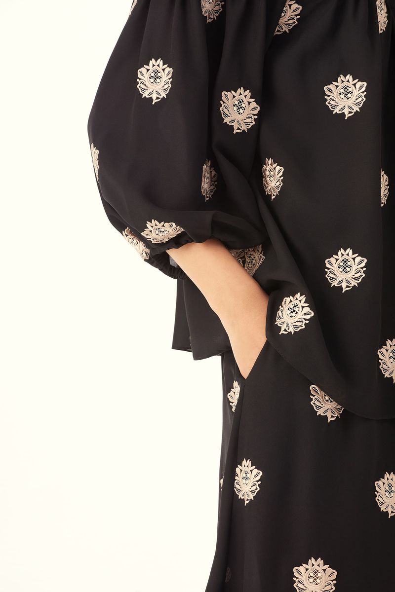 A Calca Sandalo traduz uma leitura contemporânea e artsy. Confeccionada em Sandalo, Crepe de Chine mantém a inspiração provençal do buquê floral, reinterpretada com pequenos brasões, mantendo a técnica de recorte a laser e detalhes sutis de richelieu pontilhado, resultando em um desenho leve, elegante e de leitura atemporal. A cintura média (logo abaixo do umbigo) e o comprimento no ossinho definem o shape de caimento abaulado, com elástico na barra que modela o tornozelo. O fechamento lateral por zíper, finaliza a peça com traços modernos e a assinatura construtiva CRIS BARROS.