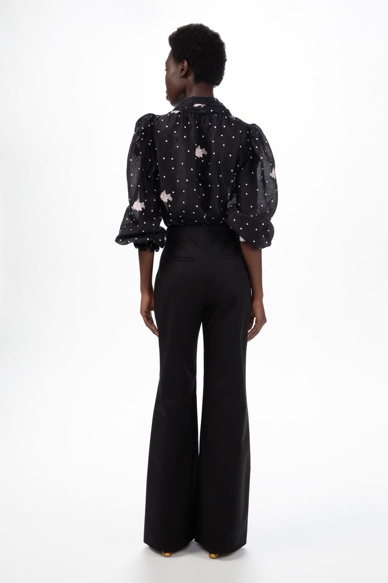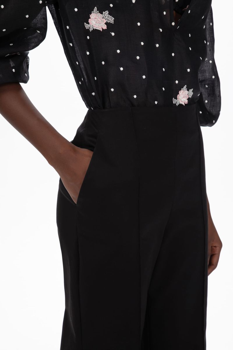 A calça Serpentina CRIS BARROS é um básico sofisticado. De Tripoli, nosso algodão encorpado, super confortável para uso diário. Possui modelagem flare, cintura alta, recortes, bolsos funcionais frontais e posteriores e nosso bordado "assinatura" nas costas.