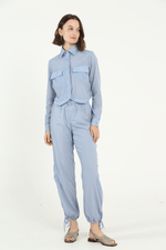 Calça em voil de poliamida com toque leve.