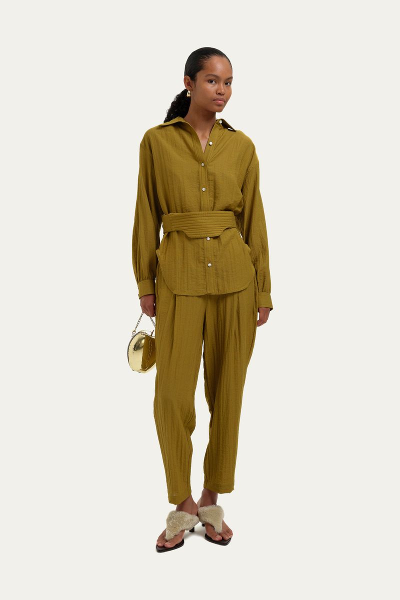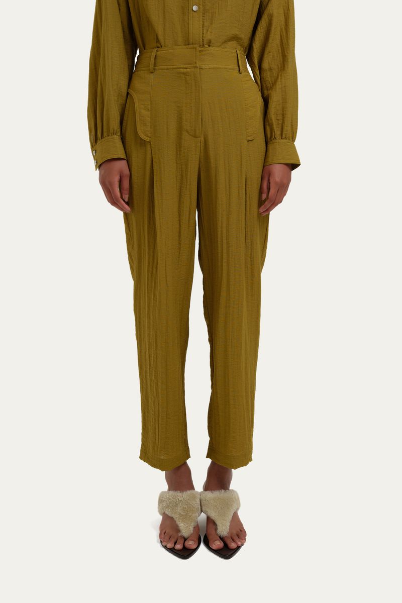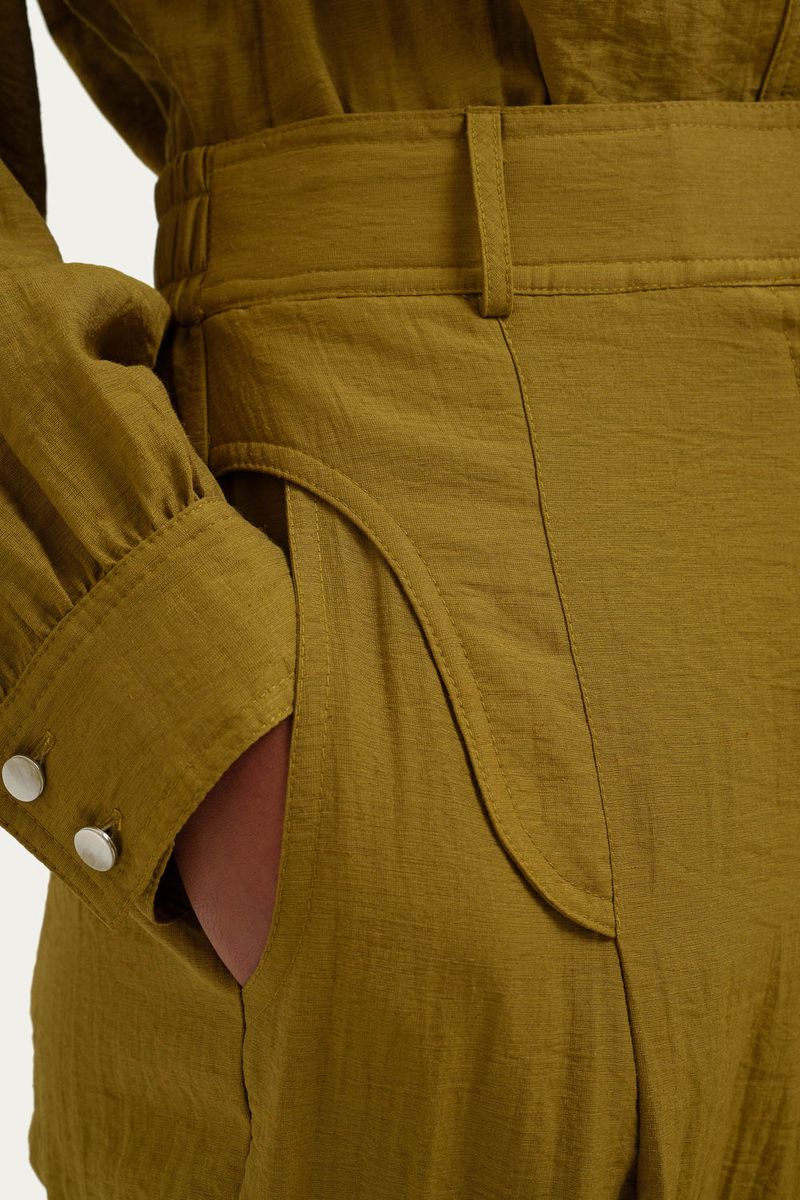 Com uma modelagem reta e a delicadeza da transparência em viscose e linho, a Calça Strauss Framed propõe uma nova perspectiva de elegância. Esta peça, com seu caimento preciso e detalhes frontais singulares, insere um toque de contemporaneidade e distinção ao vestuário.