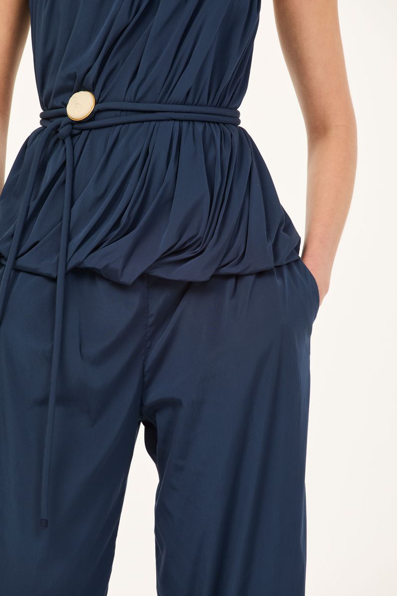 A calca Tilia CRIS BARROS é coringa e estilosa. De Eugênia, tecido misto, confortável com caimento leve e fluido, feito de fibra de origem renovável que possui a certificação TENCEL MODAL, garantindo manejo florestal sustentável e uma produção ecoeficiente. calça de eugênia, nossa tricoline. Possui shape cenoura, bolsos laterais e posteriores, cintura logo abaixo do umbigo com elástico, pregas frontais e comprimento no ossinho.