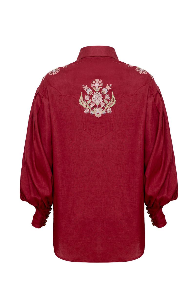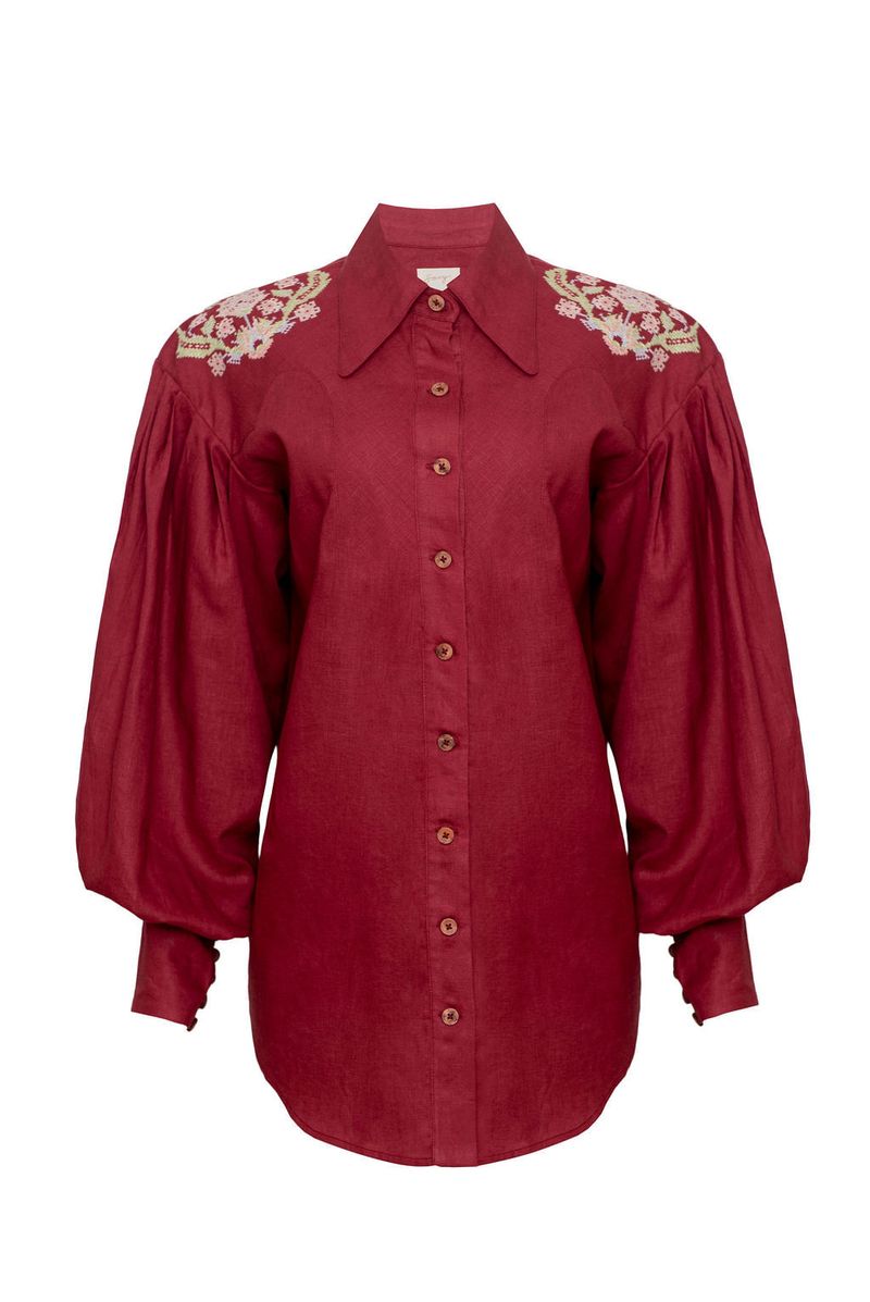 Camisa Bordada Georgia Savy - Vinho