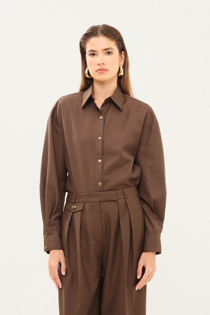 Camisa em tecido plano com toque de lã.