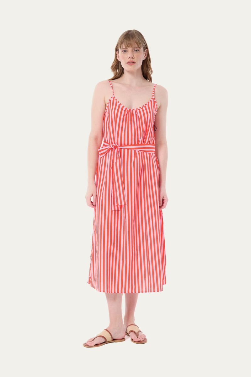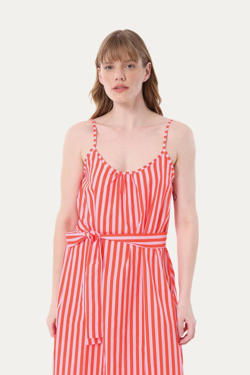 A Camisola Fun Essencialist Gallerist + Anotheroom apresenta um design refinado com sua estampa de listras e decote redondo. As alças finas reguláveis e a faixa de amarração permitem um ajuste perfeito, conferindo um caimento leve e adaptável para um estilo descomplicado e elegante.
