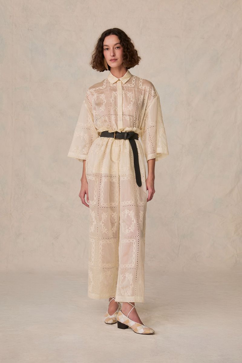 Esta camisa da Paula Raia apresenta uma modelagem ampla e um caimento fluido. Os detalhes de vista coberta em voil bordado gaze chá conferem um toque de exclusividade e uma elegância sutil. Uma peça versátil, pensada para proporcionar conforto e um estilo refinado em diversas ocasiões.