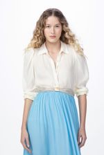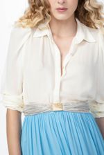 A camisa Ivana CRIS BARROS é classica e sofisticada. De Virgo, tecido fluido com leve transparência. Possui gola clássica, mangas longas com ombros e punhos franzidos e botões de madre pérola com tecido sobreposto.