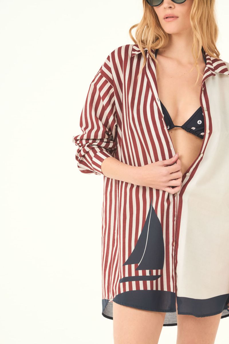 A camisa Lisse CRIS BARROS é fresh e estilosa. De Bartô, algodão 100%, possui fibra natural e biodegradável, tratado com produtos certificados OEKO-TEX , inofensivos para as pessoas e o meio ambiente, que traz a estampa Veleiro exclusiva, desenvolvida em nosso atelier. Possui shape reto, mangas longas, botões forrados e comprimento alongado.