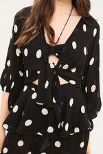 A Camisa Manga Curta De Amarrar Adriana Degreas - POA é uma peça essencial que combina leveza e estilo. Confeccionada em 100% Viscose, esta camisa apresenta uma charmosa estampa poá e um distintivo detalhe de amarração, conferindo um toque moderno e versátil ao seu guarda-roupa. Perfeita para quem busca elegância descomplicada, ela realça a silhueta com fluidez e um caimento impecável, refletindo a sofisticação da ADRIANA DEGREAS.