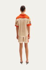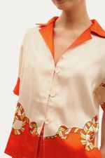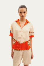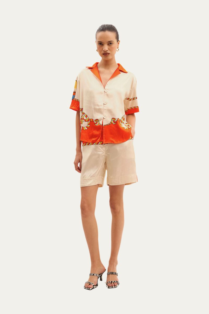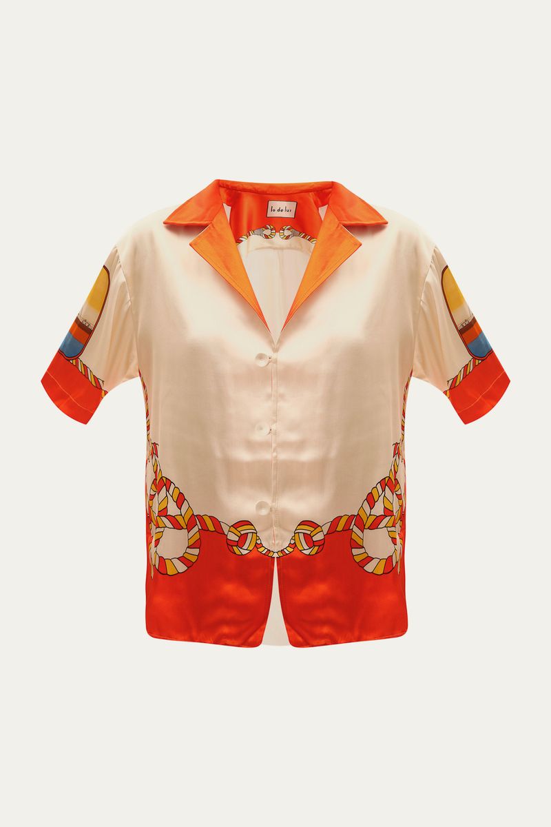 Confeccionada em cetim de viscose, a Camisa Manga Curta Leme Lo De Lui oferece um toque luxuoso e um caimento fluido. Sua estampa exclusiva e vibrante adiciona um elemento de distinção, elevando o visual com sofisticação e personalidade.