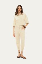Tecido Principal: 46,49% Algodão, 31,13% Viscose, 11% Poliéster, 10% Linho, 1% Elastano.