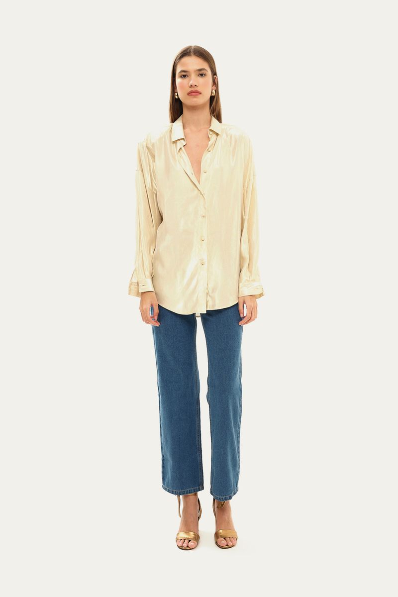 Camisa em tecido plano com fios metalizados