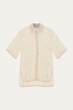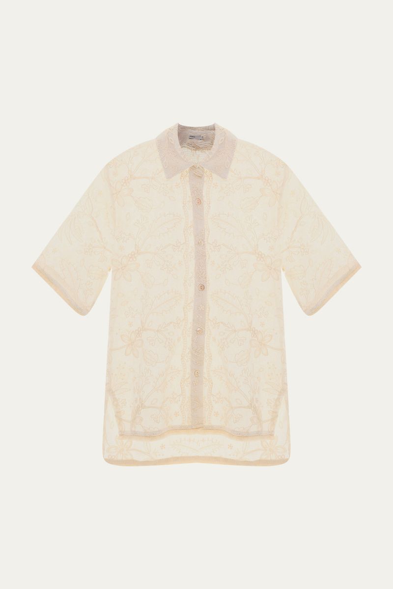 A Camisa Mc Les Glan Clemence revela uma fusão harmoniosa entre a delicadeza intrínseca da tela bordada e um design contemporâneo. Seu corte reto e mangas curtas delineiam uma silhueta que prima pela elegância e conforto, adaptando-se com fluidez ao corpo.
