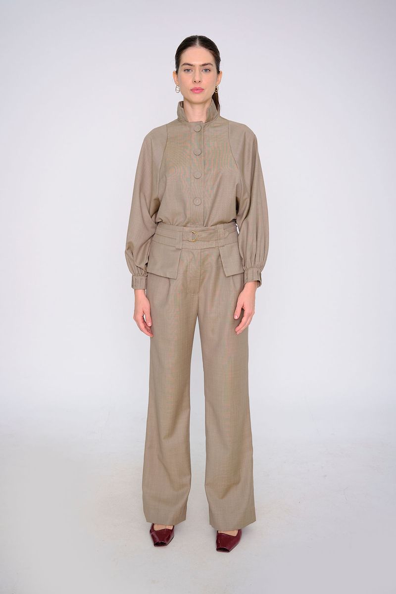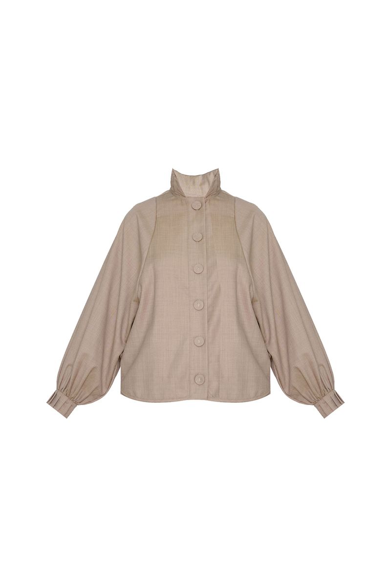 Camisa em tecido plano de lã.