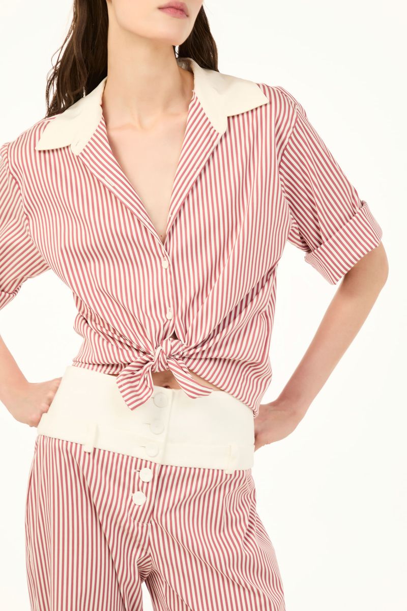 A camisa Tilia CRIS BARROS é estilosa e descolada. De Marina, tricoline listrada,de algodão com elástano e toque macio. Possui mangas curtas, botões forrados e colarinho de tecido Eugênia off white.