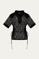 A Camiseta Renda Le Barb Lo de Lui é uma expressão de elegância sutil e design apurado. Confeccionada em renda, esta blusa apresenta uma modelagem slim que valoriza a silhueta, complementada por um decote com gola canelada e mangas curtas. Um diferencial são as canaletas laterais com amarrações, que permitem um ajuste personalizado, conferindo caimento impecável e um toque de versatilidade à peça.