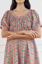 Camisola manga curta com modelagem soltinha. Possui decote arredondado com acabamento em Sianinha. Fechamento em botões perolados. Composição: 62% Algodão e 38% Viscose.