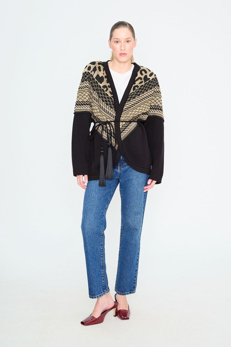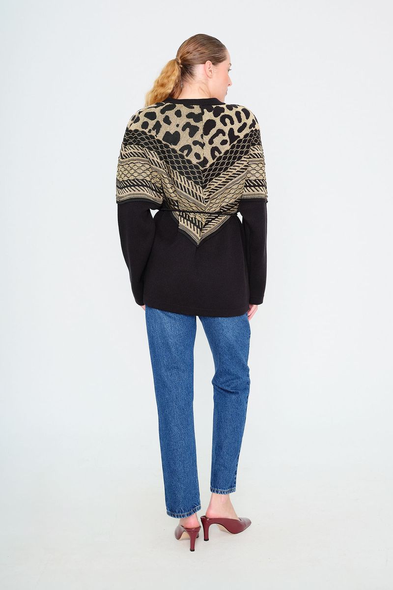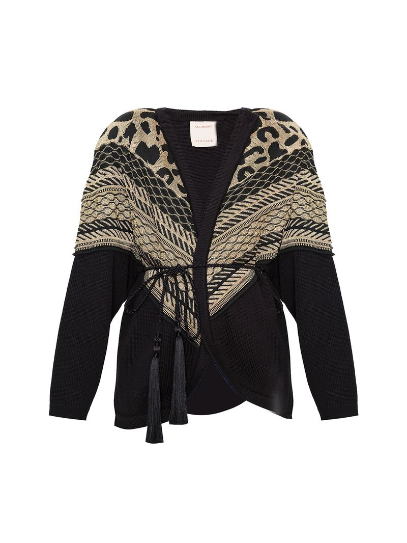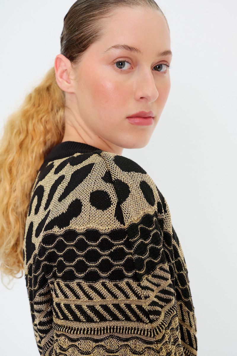Detalhes dourados em jacquard.