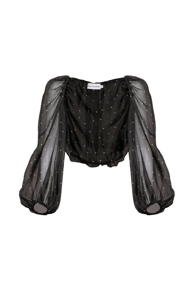 O Casaqueto Carmela traduz leveza com traços modernos, onde transparência e volume se encontram em equilíbrio. Em organza estampada, tecido com transparência sofisticada, constrói uma presença sutil e precisa. O comprimento cropped define a proposta curta com desenho objetivo, enquanto as mangas longas bufantes criam volume controlado e os elásticos embutidos ajustam punhos e acabamento com conforto e definição, finalizando a peça com gesto contemporâneo e assinatura CRIS BARROS.