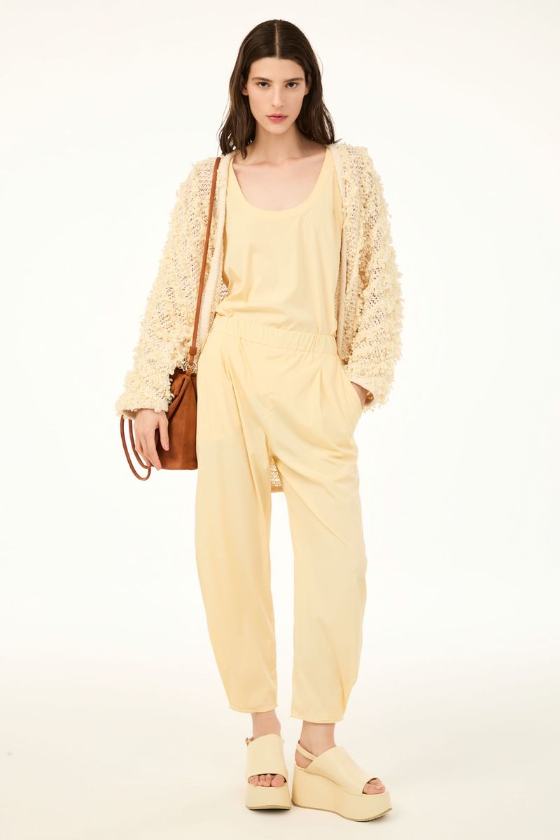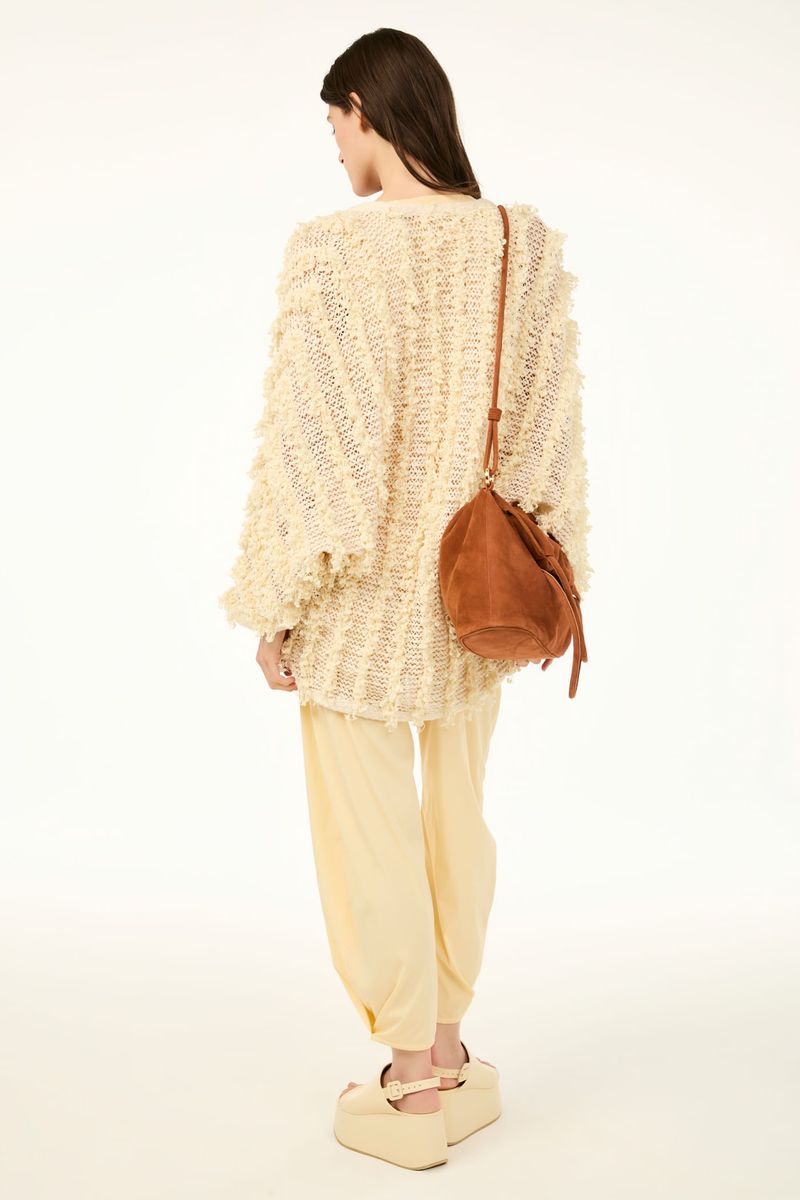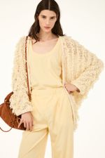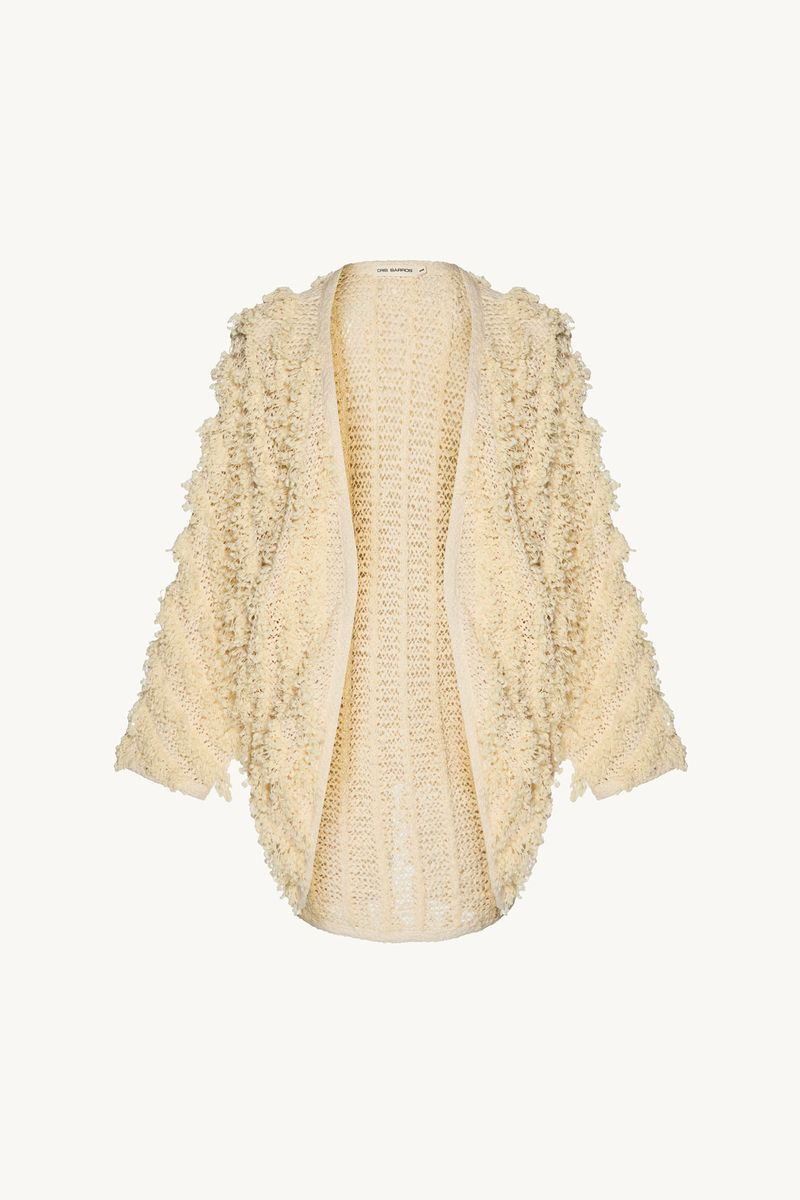O casaqueto Betania CRIS BARROS é comfy e estiloso. De tricot texturizado, possui shape sem fechamento, comprimento alongado e mangas longas.