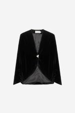 O casaqueto Galena CRIS BARROS é elegante e estiloso. De Alamo, nosso veludo encorpado de toque macio, fluido e com um leve brilho acetinado. Possui shape amplo, acabamento com cordão são fransisco, botão jóia banhado à ouro em formato de coração, com design exclusivo desenvolvido em nosso atelier.
