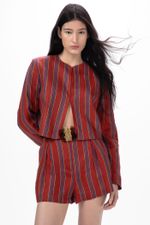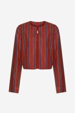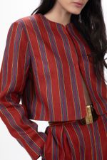 O casaqueto Meridiana CRIS BARROS é estiloso e confortável. De Cyrus, tecido listrado puro linho exclusivo, desenvolvido em nosso atelier. Perfeito para o verão pois é leve e fluido. Possui mangas longas, ombros estruturados com ombreiras, shape cropped mais solto e três ganchos para fechamento interno.