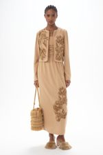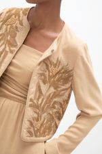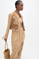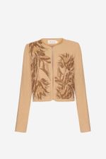 O casaqueto Nirvana CRIS BARROS é um statement, único e elegante. De Jacarta, traz bordado exclusivo desenvolvido em nosso atelier, que tem em seu tramado, mix de linho encorpado e viscose, extraído de fibras de madeira de reflorestamento e tem uso consciente de água na sua fabricação, garantindo um ciclo de reaproveitamento responsável. É o equilíbrio perfeito entre frescor e conforto. Possui shape justo, mangas longas com ombreiras, comprimento cropped, decorado com viés sur ton na volta toda e fechamento por ganchos.