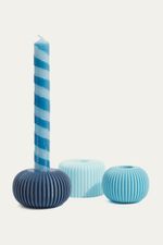 Um trio que se transforma. O Castiçal Trinca permite brincar com alturas, shapes e cores, criando composições leves e cheias de personalidade. Três castiçais em um!