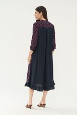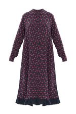 Chemise midi em crepe de chine de seda. Modelagem reta com shape soltinho. Gola padre. Mangas compridas. Punhos ajustados. Barra com babados. Aplicação de contas. Estampa exclusiva. Fechamento frontal em botões caseados.
