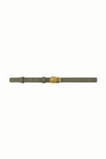 CINTO CONFECCIONADO EM COURO COM 2CM DE LARGURA, CORPO COM PERFURAÇÕES PARA AJUSTE PODENDO SER USADO NA ALTURA DA CINTURA E DO QUADRIL, ACABAMENTO COM PESPONTOS, FECHAMENTO FRONTAL COM PINO. FIVELA COM DESIGN EXCLUSIVO DA MARCA EM METAL BANHO OURO CLARO COM RESINA.