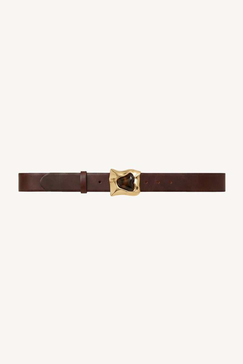 O Cinto Corallo traduz precisão essencial, onde funcionalidade e desenho se encontram com naturalidade. Confeccionado em couro, constrói presença e estrutura no uso. O corpo com perfurações para ajuste permite diferentes posições, na altura da cintura ou do quadril, enquanto o acabamento a fio e o fechamento frontal com pino reforçam linhas limpas. Já a fivela em metal com resina, de design exclusivo CRIS BARROS, finaliza a peça com assinatura singular.