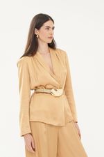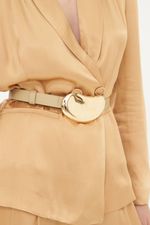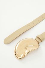 Fivela dourada em formato orgânico.