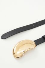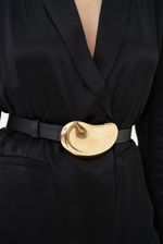 Fivela dourada em formato orgânico.