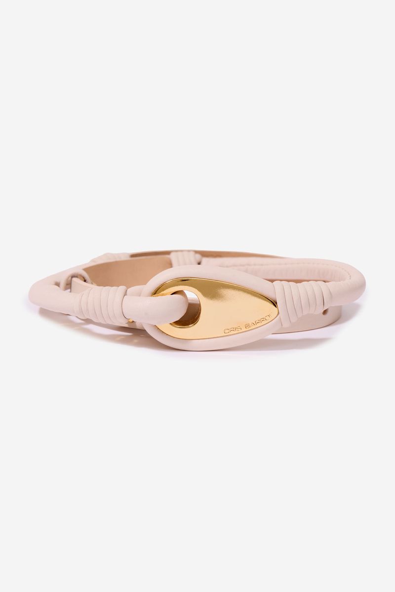 O cinto Sofia CRIS BARROS é clássico e elegante. De couro mestiço, com leve brilho envernizado. Possui rolotes de couro com fechamento ajustável de couro com pinos na parte posterior, e detalhe com passante metal em formato de gota, banhado à ouro, com design exclusivo, desenvolvido em nosso atelier.
