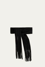 O Cinto Venice All Most Vintage apresenta uma essência atemporal e um design que valoriza a silhueta. Confeccionado em camurça, este modelo se distingue pelo seu acabamento em franjas longas, que adicionam movimento e sofisticação. O fechamento em amarração permite um ajuste versátil que garante uma presença marcante e adaptável a diversas composições.