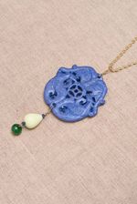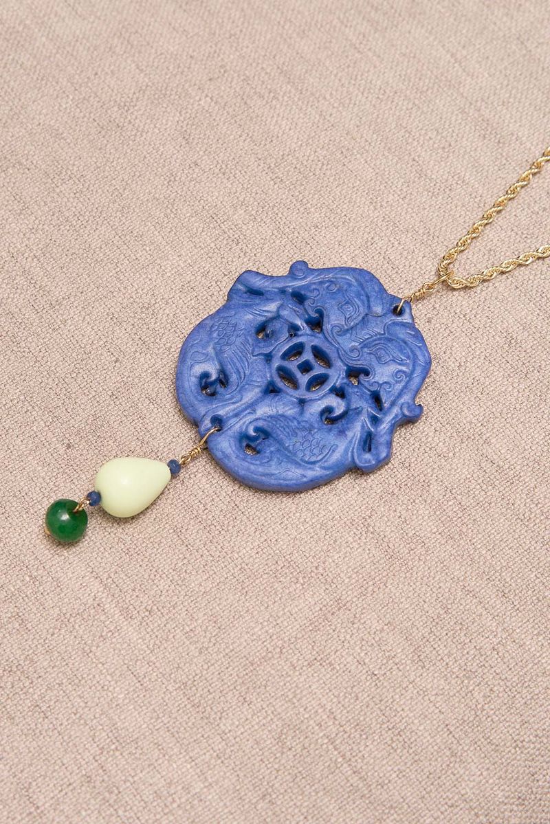Colar Mandala Jade Azul com Crisopasio e Jade Verde, em Fita de Veludo
