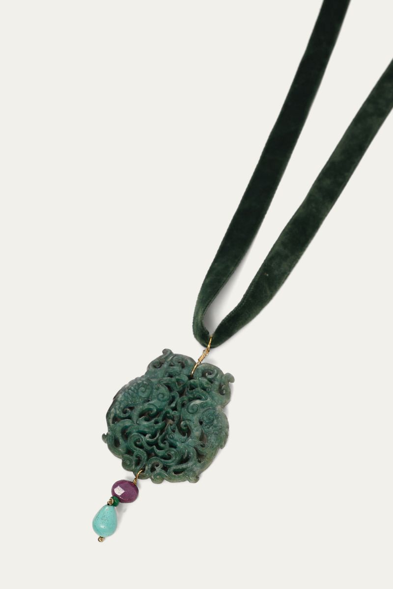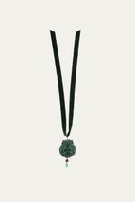 Colar Mandala Jade Verde com Sugilita e Turquesa, em Fita de Veludo
