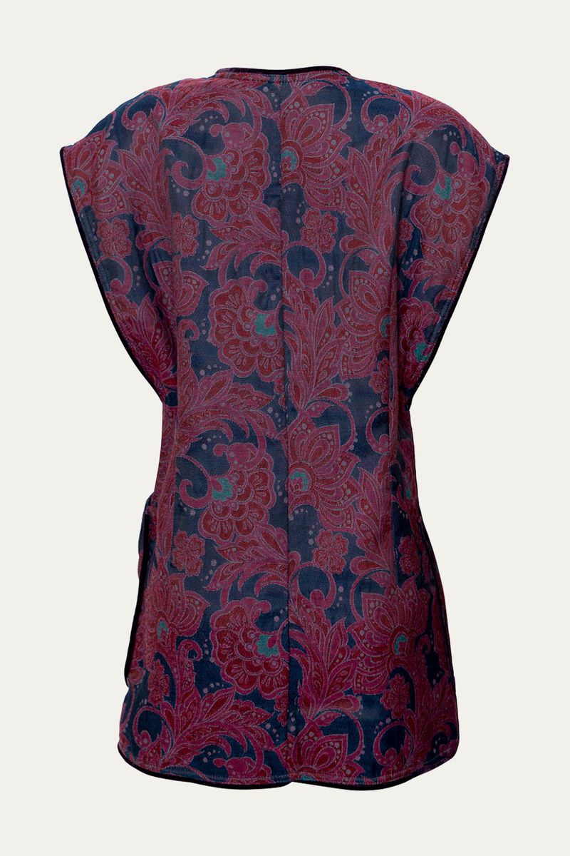 Detalhe de vivo de veludo aplicado ao redor de toda a peça e bolsos.