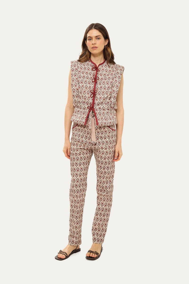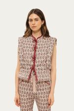 Colete de modelagem reta e curta, com enchimento e dois bolsos laterais.