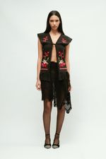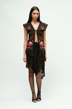Colete em tecido artesanal produzido por artesãs mineiras.