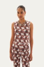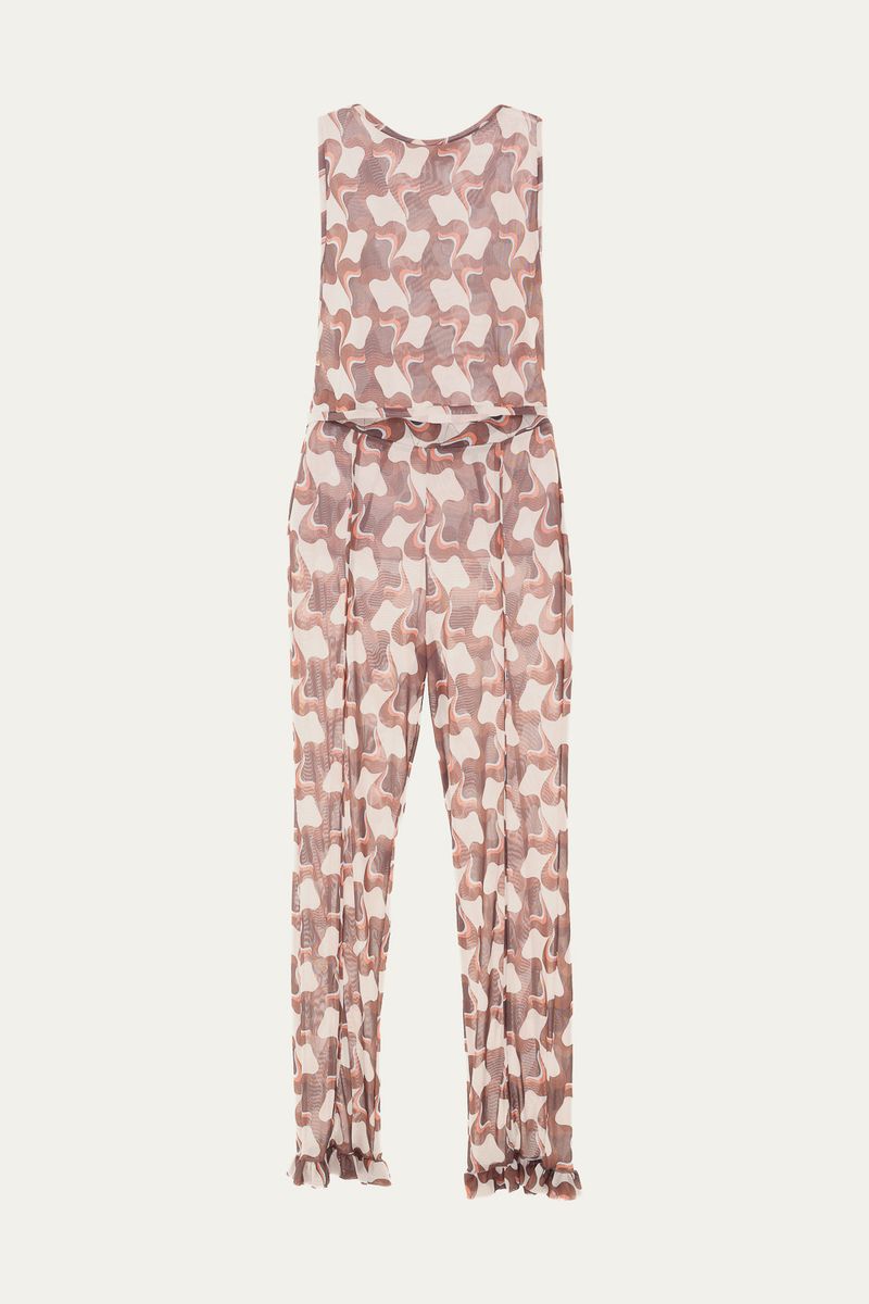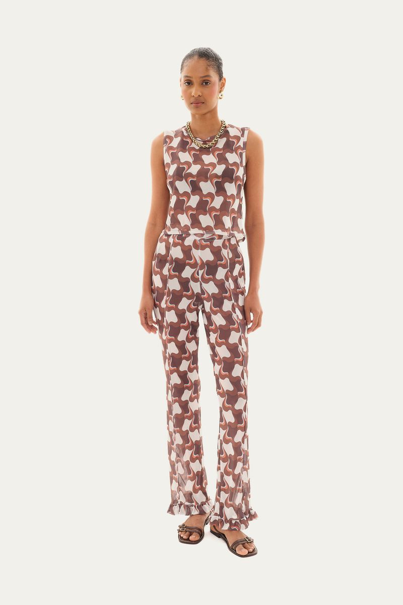 Conjunto de regata e calça em tule estampado.