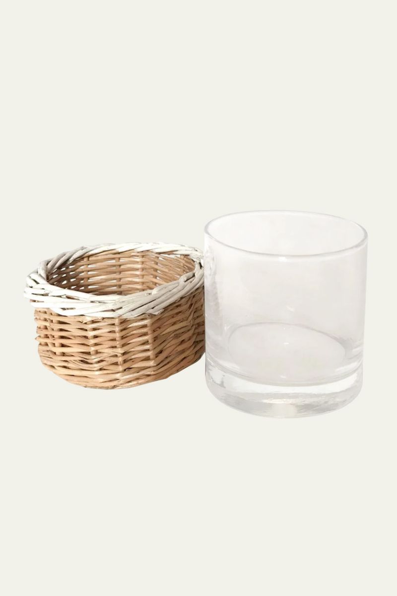 Para dar mais bossa em qualquer mesa, copo baixo com base de vime removível, estiloso e prático!