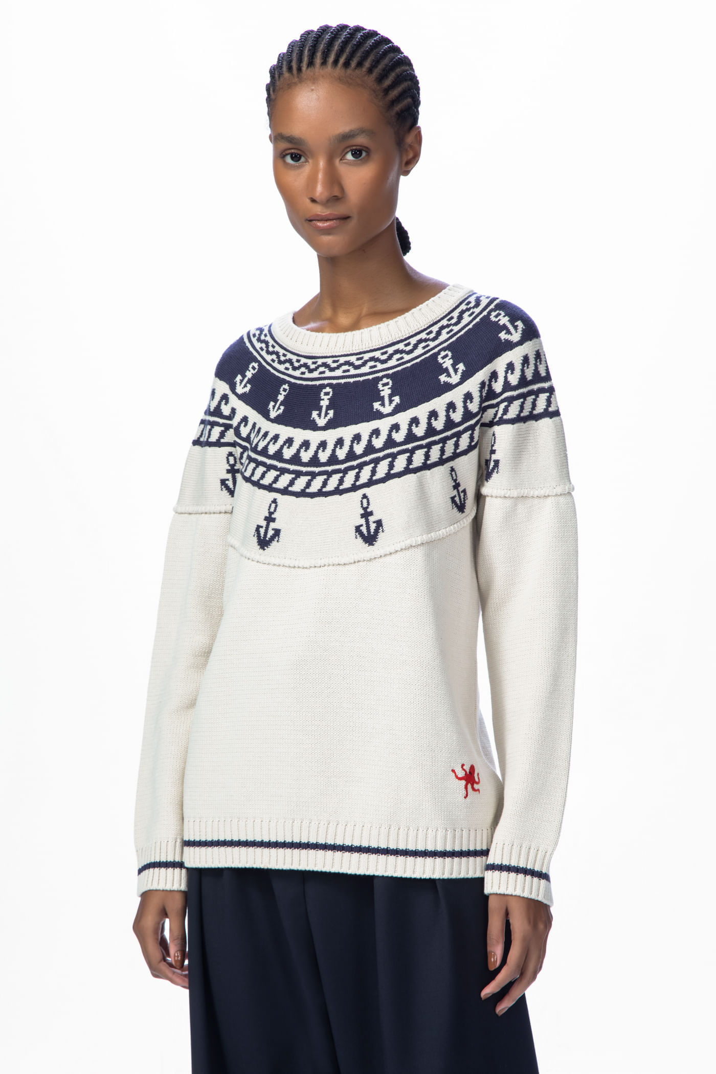 Top Dolly Cris Barros - Off White/Marinheiro