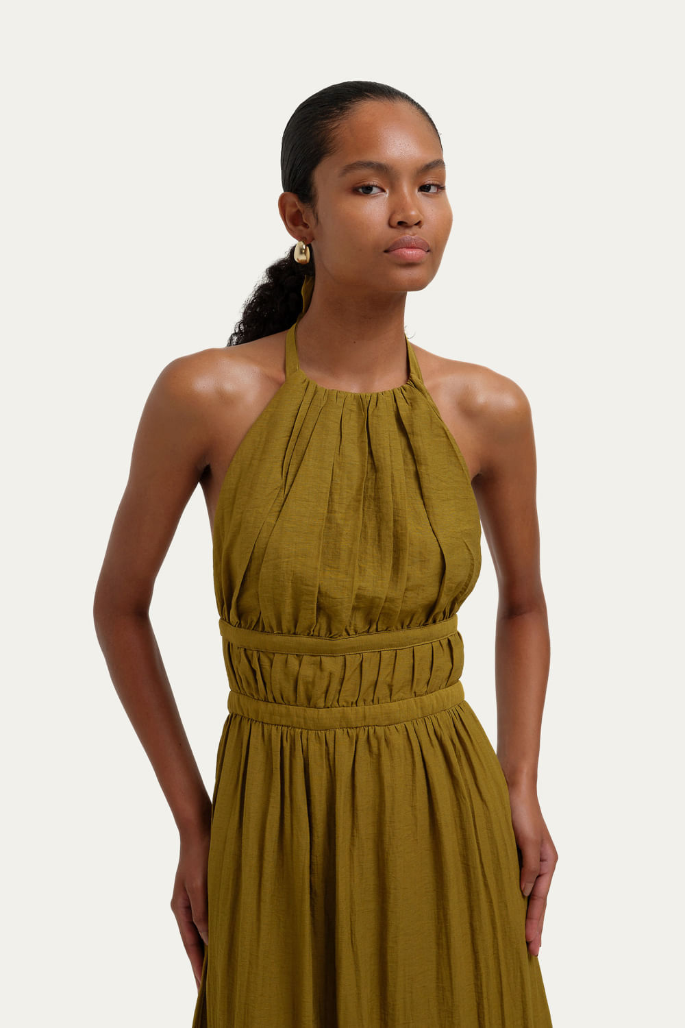 Vestido Midi Ricce Framed - BEGE