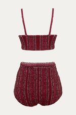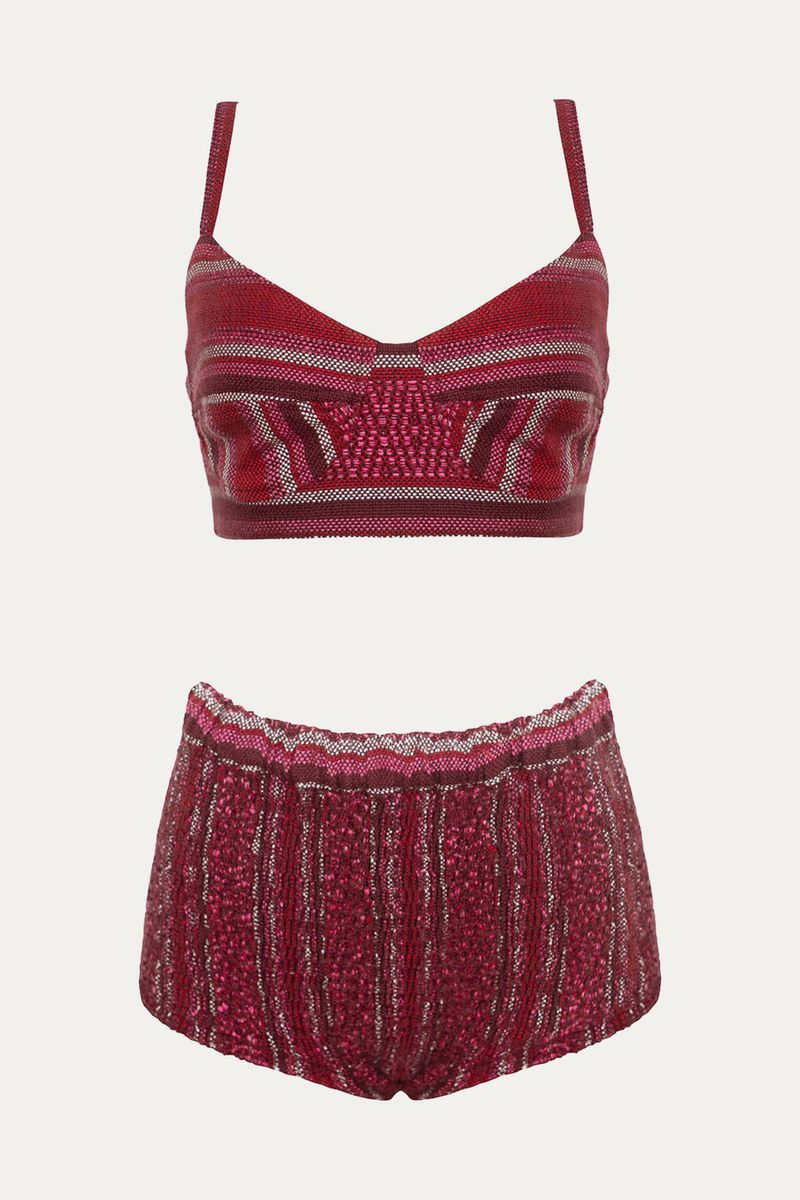 Top de modelagem ajustada, com decote meia taça, e costas em lastex. Possui alça fina. Hot pants confeccionado em tear com lastex. em toda a peça. 42% algodão 42% acrílico 16% viscose / forro top 100% algodão