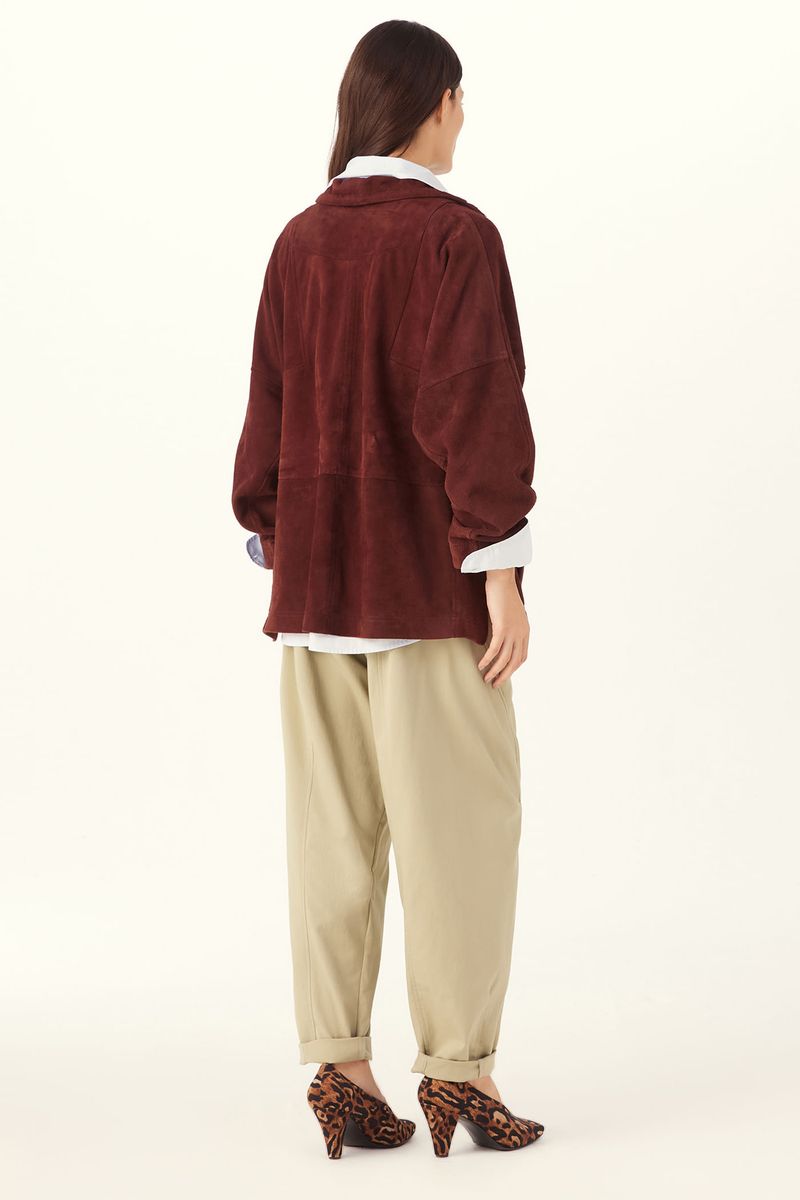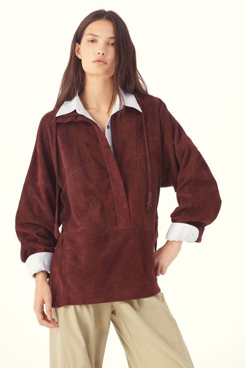 A Jaqueta De Couro Genova traduz força contida, onde linhas precisas e matéria nobre caminham lado a lado. Confeccionada em Couro, evidencia a resistência natural do couro, com toque macio e caimento estruturado, ressaltando durabilidade e sofisticação, com exclusividade do material e acabamento artesanal como expressão de savoir-faire. O caimento reto e estruturado encontra mangas longas e gola alta com rolote de couro para ajustes, enquanto o bolso funcional na frente e a abertura frontal com zíper de metal até a altura da cintura organizam a construção com traços modernos e assinatura CRIS BARROS.