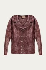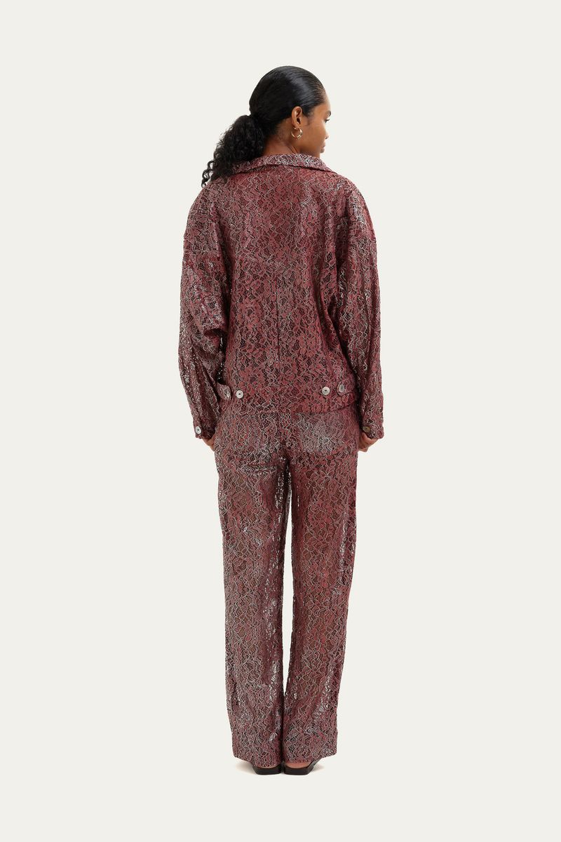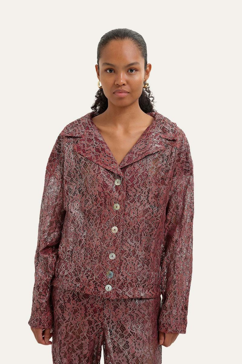 A Jaqueta Jouer Framed, oferece uma sutil lumnosidade e um toque contemporâneo. Sua modelagem bomber, refinada e confeccionada em renda com foil prateado, confere uma distinção discreta. Detalhes como as pregas na parte frontal, o barrado e os funcionais bolsos frontais complementam a peça, unindo conforto e uma estética apurada.