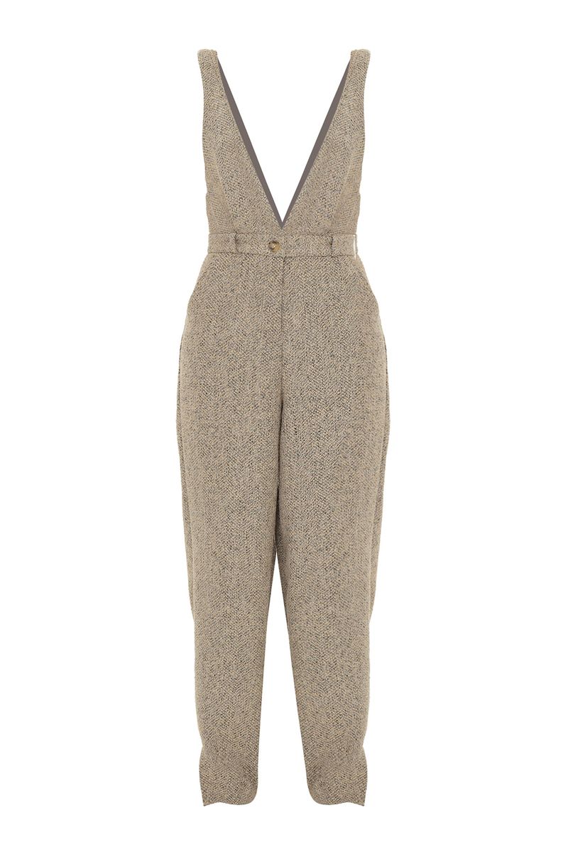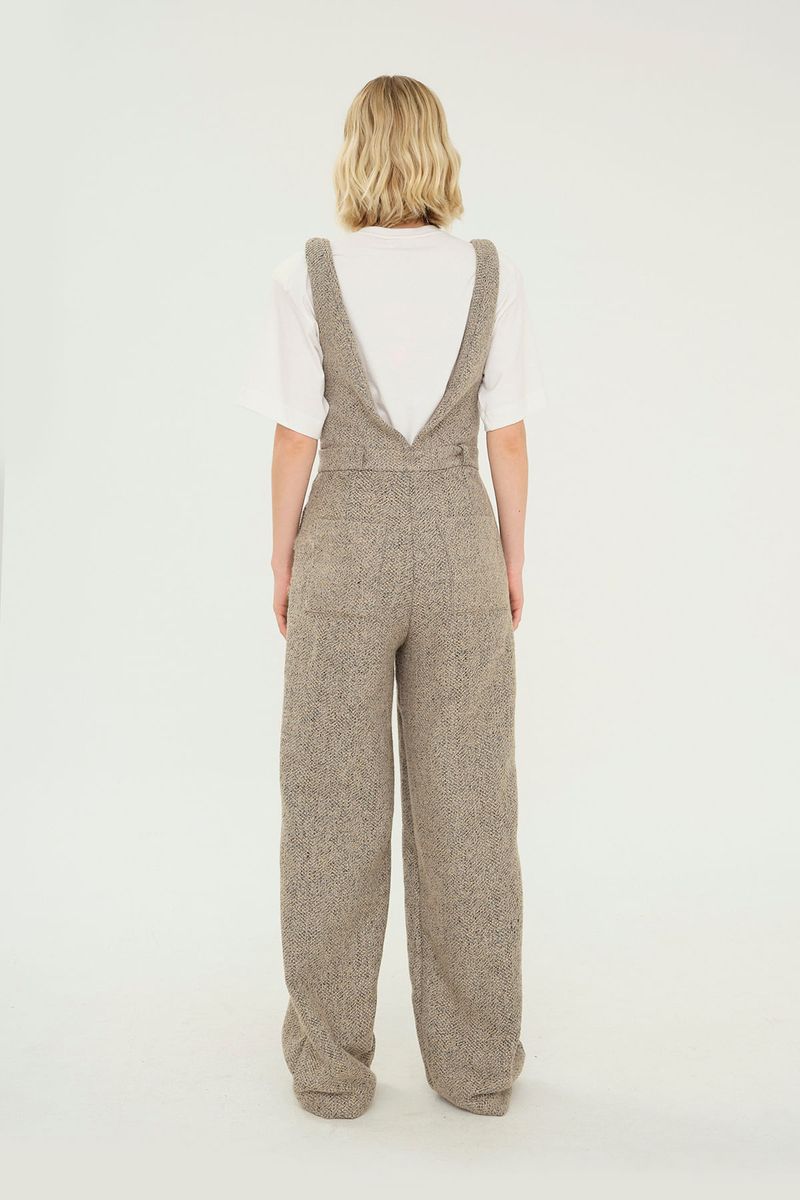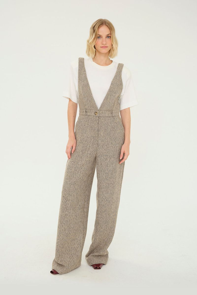 Macacão em tweed com toque texturizado.