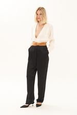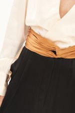 Possui faixa torcida na cintura.