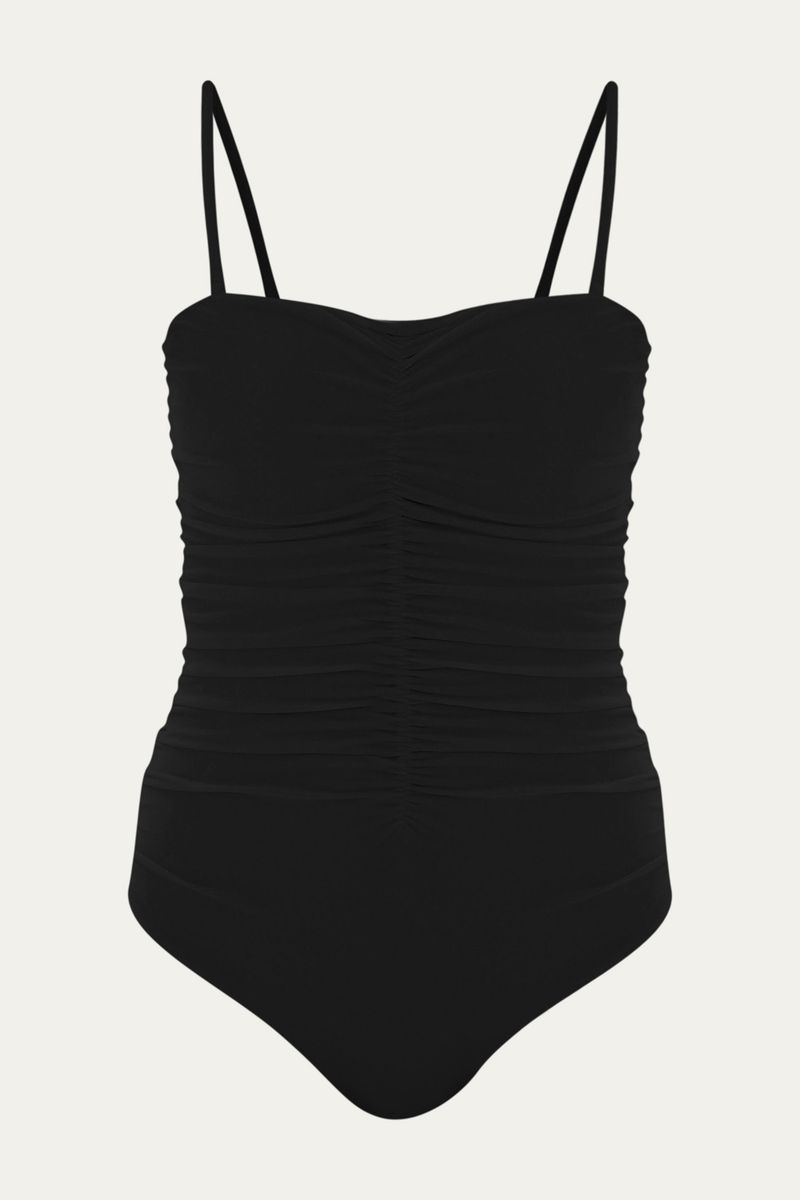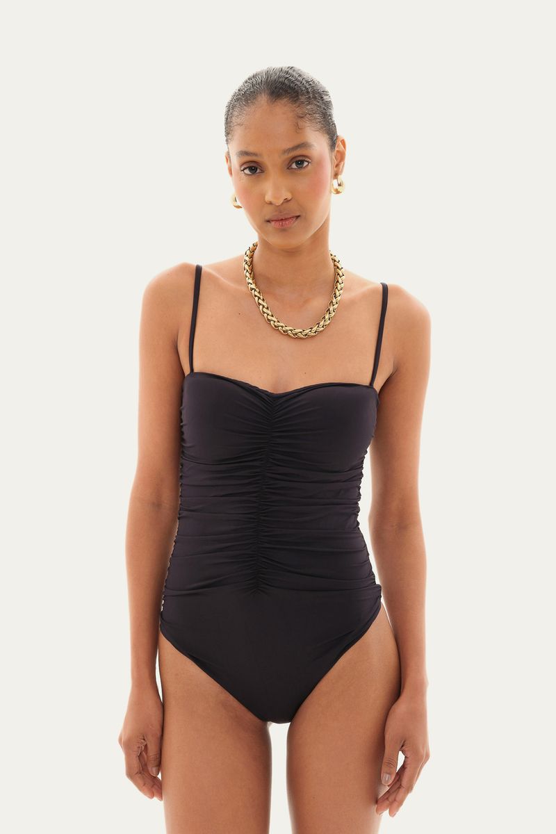 Maiô Drapeado Frontal Preto Lette Beachwear - PRETO